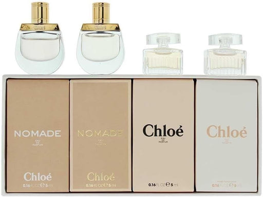 Includes four iconic Chloé fragrances in convenient 5ml mini sizes. Experience both Eau de Parfum and Eau de Toilette versions of Nomade and Chloé...